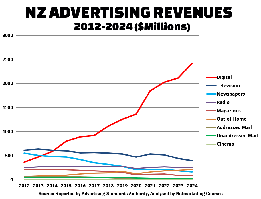 According to the NZ Interactive Advertising Bureau, New Zealand digital advertising revenue now represents more than 60% of total NZ advertising expenditure.